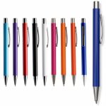 Caneta metálica com touch screen, carga esferográfica azul e acionamento por clique.