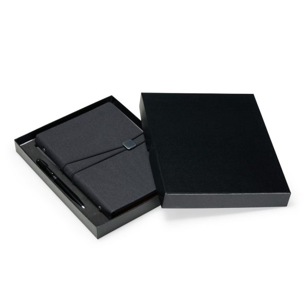 Anote tudo e organize os cartões com o nosso Kit Executivo! Ele vem com uma caneta metálica super sofisticada de 1.0mm na cor preta e um caderno fichário de aproximadamente 96 folhas removíveis, ou seja, dá para trocar, reorganizar e deixar tudo do seu jeito! Os seis anéis garantem praticidade, e a capa dura em couro sintético traz aquele toque elegante durante os registros e planejamentos. E tem mais! São quatro espaços para cartões, sendo um com visor transparente, espaço para guardar anotações, suporte para caneta e fechamento em elástico para manter tudo seguro. Para um toque exclusivo, ainda acompanha uma plaquinha para personalização e embalagem.