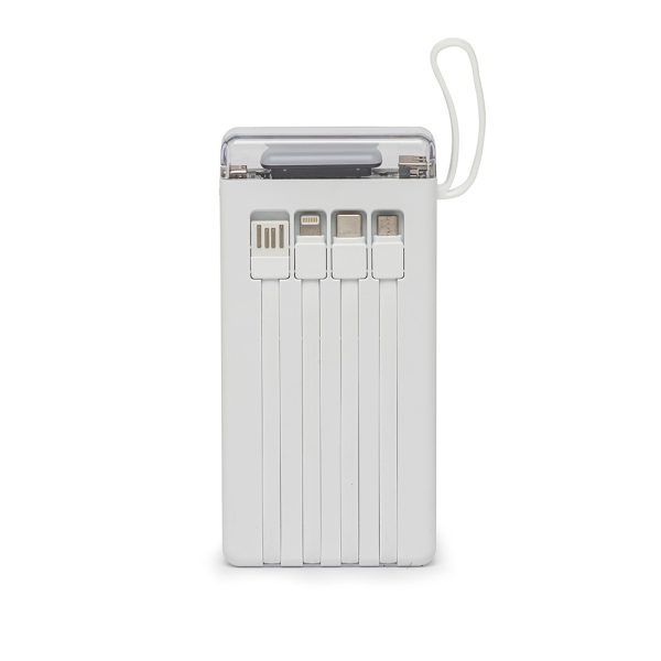 Carregador power bank de 10.000mAh com lanterna e múltiplas saídas. Produzido em plástico, este power bank possui indicadores de bateria e vem equipado com quatro cabos de carregamento, eliminando a necessidade de transportar cabos extras. Compatível com entradas V8, Tipo-C, Lightning e USB, praticidade é o sinônimo deste carregador. Com alça de borracha e um tamanho compacto para um transporte discreto, ele possui uma capacidade real de 6.000mAh para manter os dispositivos sempre carregados. Acompanha cabo USB-V8.